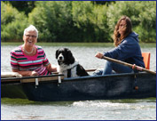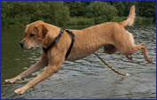 Eenmaal bedreven in dit onderdeel werken we vervolgens met de boot waarin de eigenaar plaatsneemt. De hond leert op commando de boot terug naar de kant slepen.
