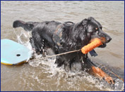 In de beginners workshop wordt het apport uit het water geoefend waarbij we gebruik maken van verschillende voorwerpen.